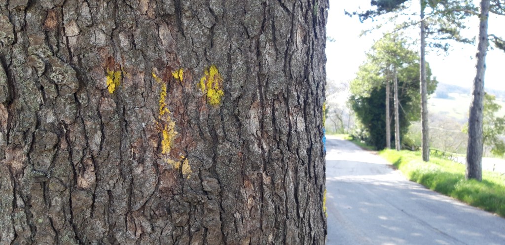 A zarándoklat során a fatörzsekre, sziklákra, betonoszlopokra festett sárga színű T betűt kell követnünk, ez a jel kísér végig utunkon. E betűvel írta alá leveleit egykoron Szent Ferenc, ez a betű a keresztény hitvilágban az újjászületés jele.