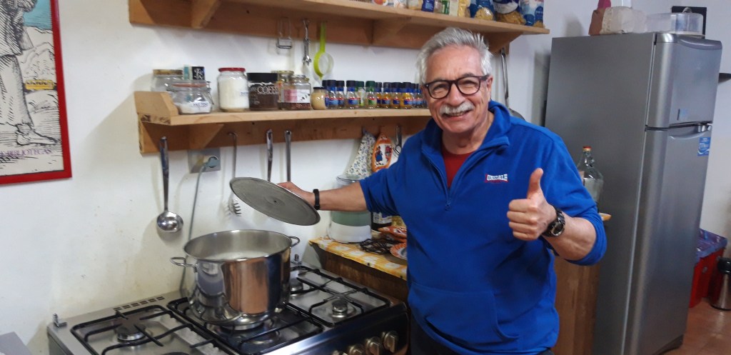 Velük gyalogoltam az utolsó előtti napon, amikor egy domb mögül felbukkant egy menedékház, és benne megtaláltuk Marthát és Pietrót, egy idős házaspárt, akik évek óta vezetik az adomány-alapon működő zarándokszállást. A Credenziale bemutatása után egyszerű hálóteremben egyszerű ágyak fogadtak, a fürdőben mindenkinek jutott melegvíz. A Spedale di San Pietro már évek óta szolgálja a zarándokokat, több ezer utazó lépett a terméskő falak közé, és ette a szerény vacsorát, amit mi is elfogyaszthattunk: egy kis adag tejfölös-sajtos tészta, mint előétel, amit valamiféle ragu követett, majd pedig az est fénypontja, egy szelet torta zárta a sort. Az út porát egy pohár vörösborral és forrásvízzel öblítettük le. Aznap éjjel az igazak álmát aludtuk.