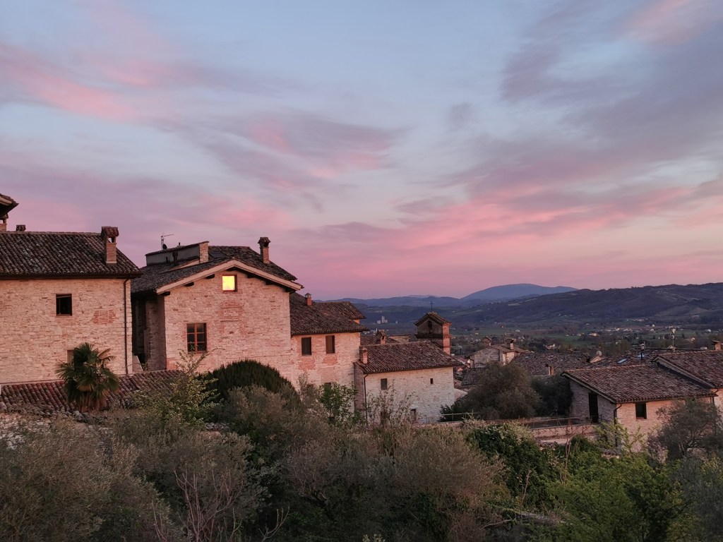 Citta di Castellóból Pietralungába vezetett utam (30 km), amely egy domb tetején található gyöngyszem. Egy tiszta, egyágyas szobácskát kaptam, és ahogy az ablakot kinyitottam, a lábam elé zuhant az umbriai vidék minden szépsége. „Ha költő lennék – gondoltam -, ezt a tájat látva sok verset írnék.” Másnap a reggelinél találkoztam Brunóval, a szálloda vezetőjével. Mikor arról beszélgettünk, hogy a szállodából milyen csodás a kilátás, elmondta, hogy őt is megérintette a táj szépsége, és mivel költő, sok versét írta úgy, hogy közben a látványban gyönyörködött.