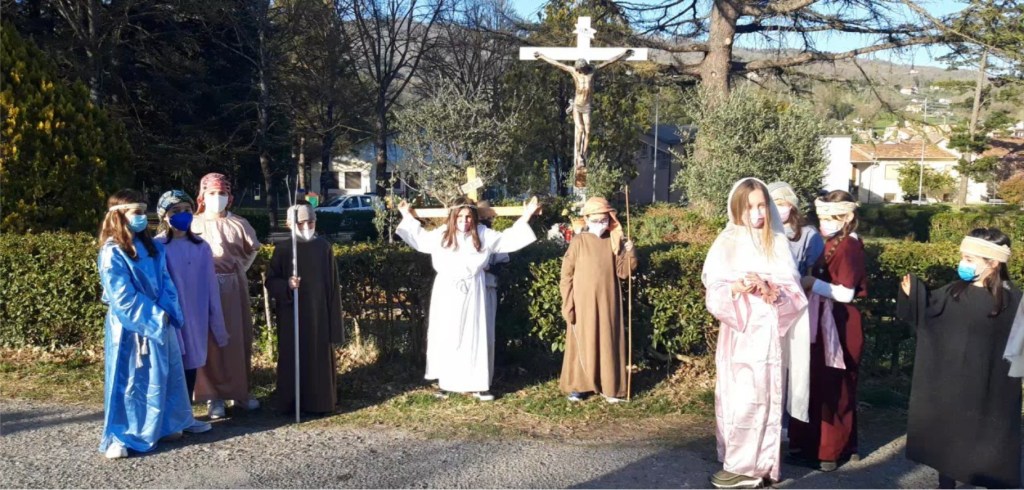 Már reggel öt órakor elindultam Sansepolcro felé (35 km), ahol már javában készültek a Pasqua, a Húsvét ünnepére. Egy elővárosi iskola előtt gyerekek próbáltak éppen egy passiójátékot. Jézust egy tündéri duci kislány alakította, mély átéléssel. A próba szünetében, amint lejött a keresztről, fájdalmas arccal rázogatta elzsibbadt karjait. Mondott valamit, amin a szülők nagyot nevettek, az apa fordított: „Elég fárasztó Jézusnak lenni!” Sansepolcro óvárosában már nyoma sem volt a meghitt hangulatnak: minden sarkon zene csendült, a kávézók és a bárok tele voltak csacsogó helybéliekkel, akik pohárral a kezükben melegítettek a hosszú hétvégére. A pizza isteni volt.