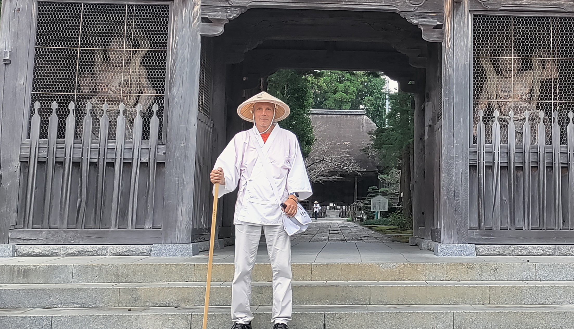 A gyalogos zarándok, aki kúpos kalapjában, fehér ingben és bottal a kezében járja az utat, a japánok szerint áldott ember. Úgy gondolják, aki találkozik egy ilyen zarándokkal, maga is áldásban részesül. Éppen ezért a hagyományos öltözet nemcsak részünkről tiszteletadás zarándok-elődeinknek, hanem jól értelmezhető jelzés a helybéliek számára: figyelem, ő itt egy zarándok, akin áldás van! Furcsa érzés, amikor ezt az áldott létet fizikai valójában is átéled: idős emberek hajolnak meg előtted, előre köszönnek, hozzád érnek, vagy valamilyen apró ajándékkal kedveskednek abban a reményben, hogy a zarándok által hordozott áldásból ők is részesülnek. Ám ami még ennél is furcsább, hogy te magad is úgy érzed, áldott vagy.