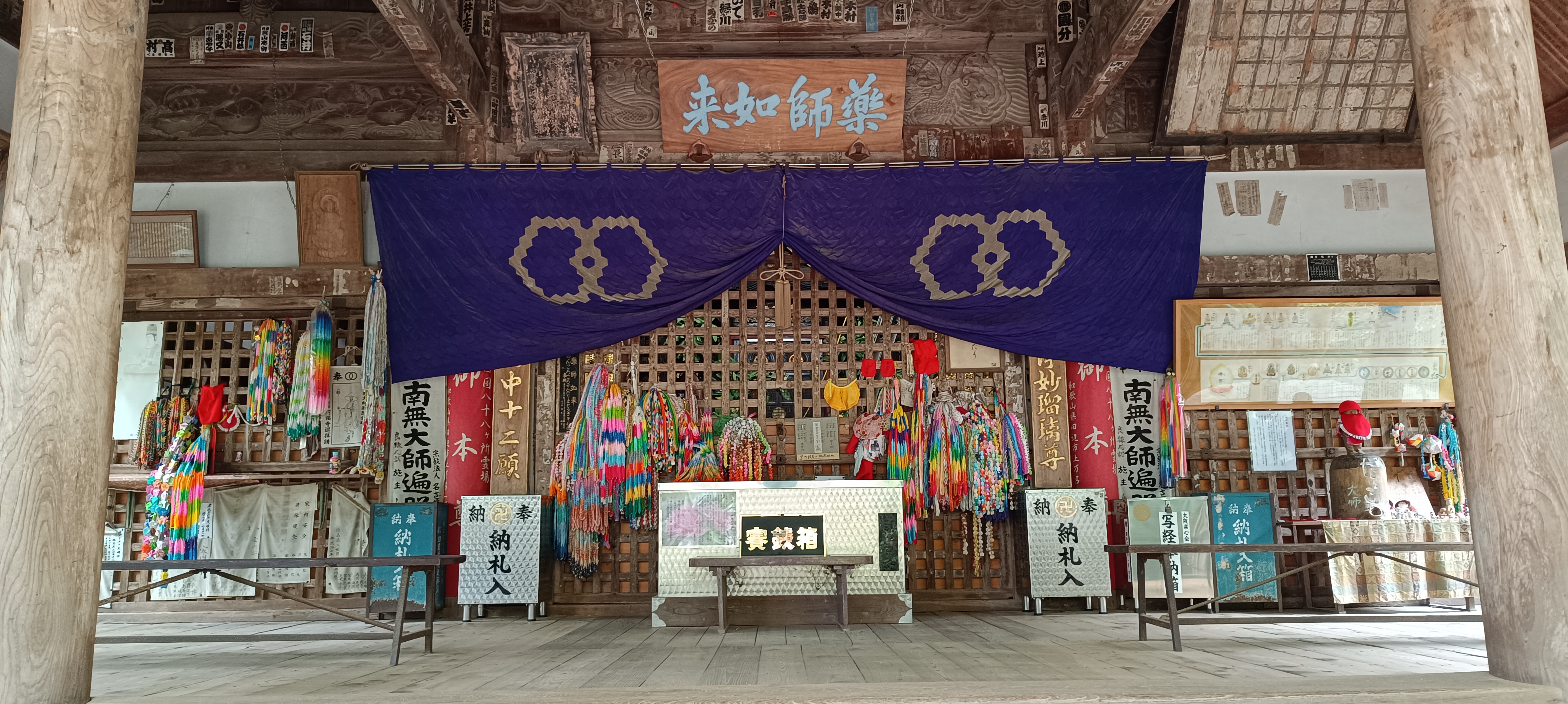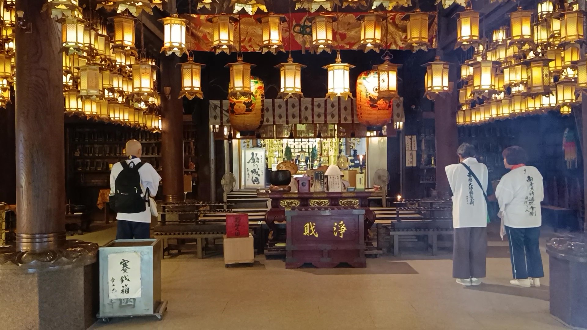 Ezután jön a templom főszentélyének meglátogatása, ahol agy fémdobozban elhelyezzük a kívánságcédulát, amelyre ráírjuk a nevünket és az aznapi dátumot. Ha van valamilyen külön kívánságunk, azt is feljegyezzük. A cédulán található egy szöveg, amely így szól: „Felajánlás Shikoku 88 templomának. Ketten vagyunk, együtt utazunk.” A cédulát elhelyezzük a megfelelő dobozban, majd egy pénzérmét dobunk a perselybe. Sokan ezután gyertyát és füstölőt gyújtanak, mantrákat énekelnek.